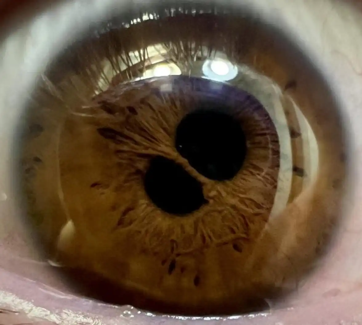 Előfordul olyan anomális eltérés a szemben, amikor a szivárványhártya mintegy beáramlik a pupillába. Szerencsére ez nem befolyásolja a látást.