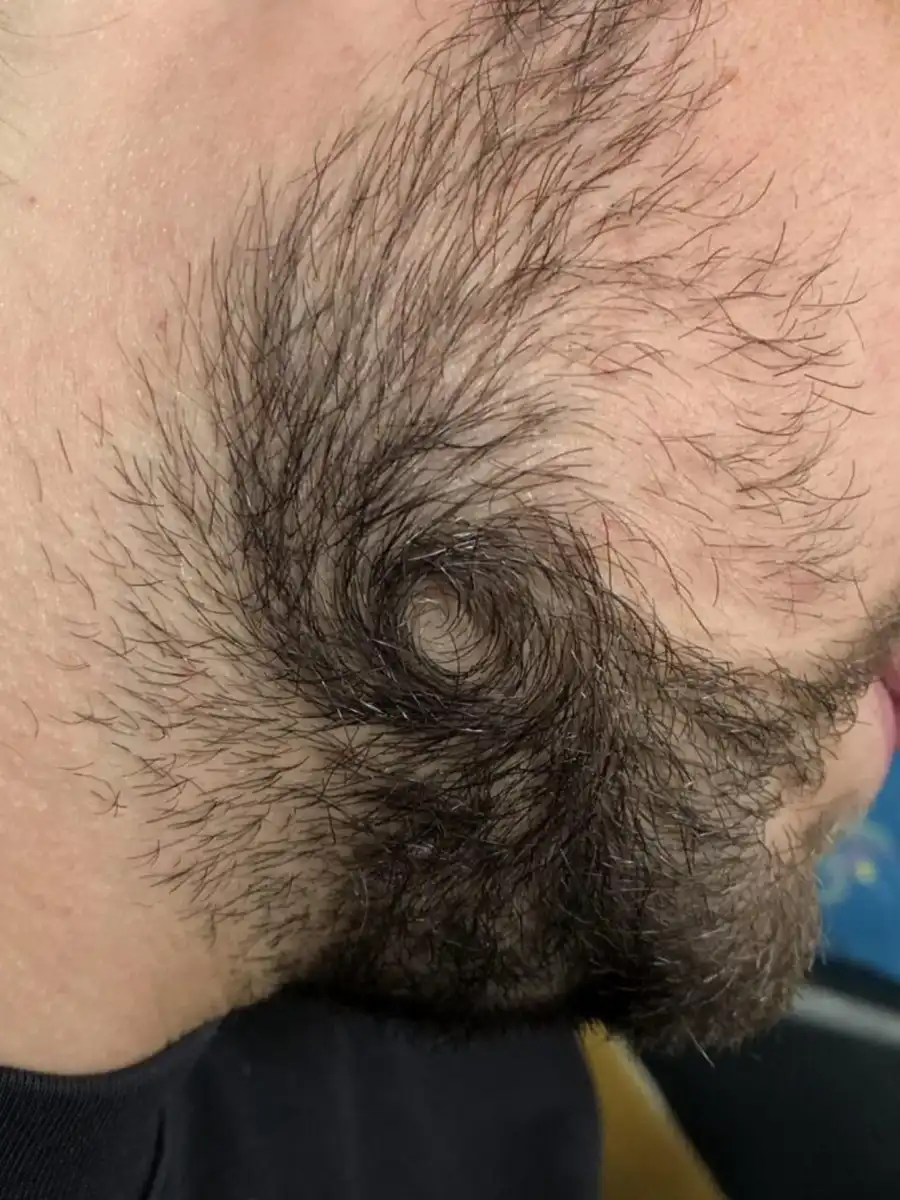 A forgók általában a fejtetőn vannak, de a srácnak a szakállán alakulnak ki.