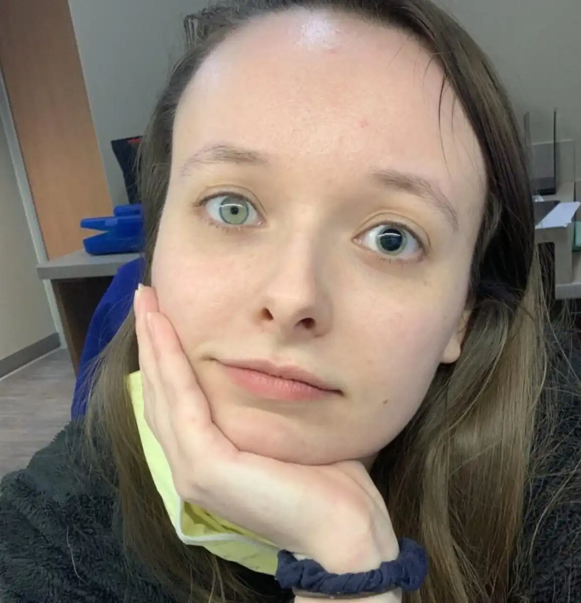 Egy anizokóriás lány, akinek a pupillái különböző méretűek.