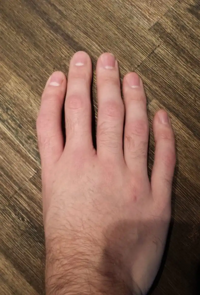 Ennek az embernek az ujjai egyáltalán nem hajlanak, ezért teljesen simák, ráncok nélkül.